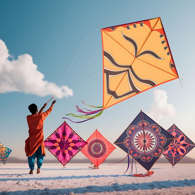 Kite flying in India dates back centuries, symbolizing freedom and joy. Historically, it was a royal pastime that gradually became a popular activity among all social classes, especially during festivals like Makar Sankranti.